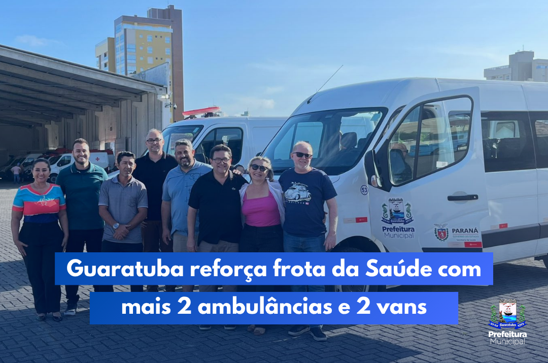 A Prefeitura de Guaratuba ampliou a frota da Secretaria Municipal da Saúde com a aquisição de quatro novos veículos, duas ambulâncias e duas vans, que vão fortalecer o transporte de pacientes e o atendimento das equipes de saúde no município.