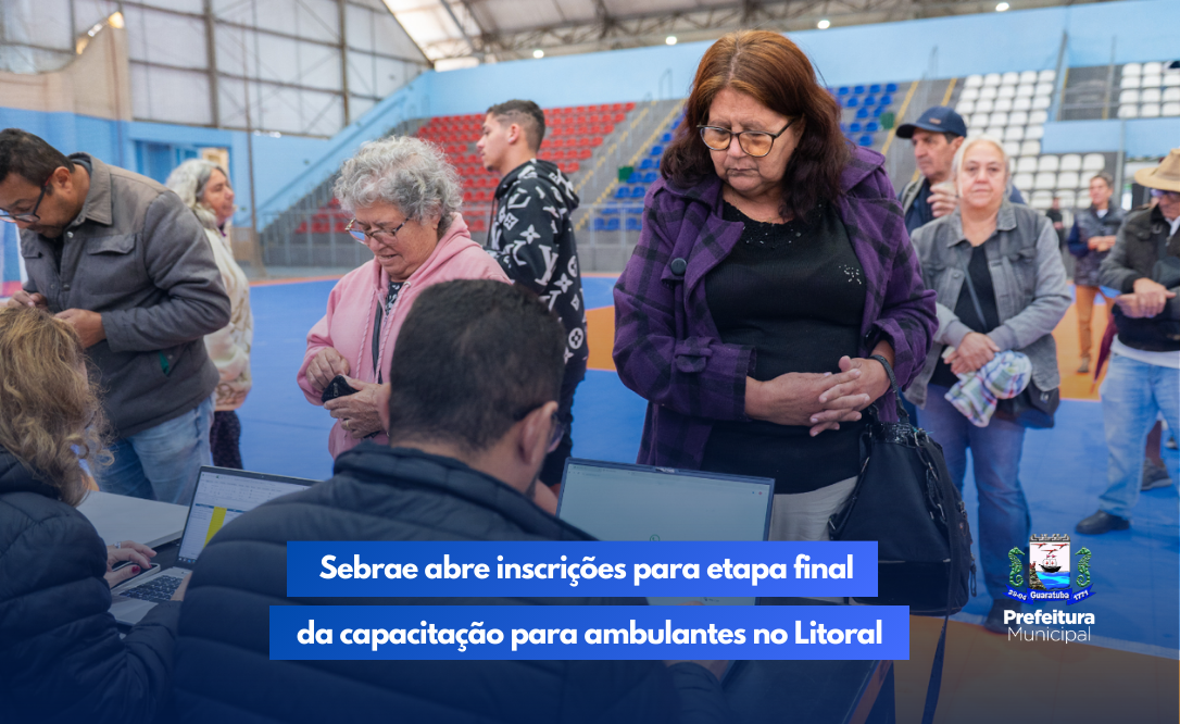 O Sebrae abriu as inscrições para a etapa final da capacitação do programa Maré de Oportunidades 2025, voltada aos trabalhadores ambulantes do Litoral. O encontro será realizado no dia 26 de novembro, das 18h30 às 21h30, no Centro de Eventos de Guaratuba.